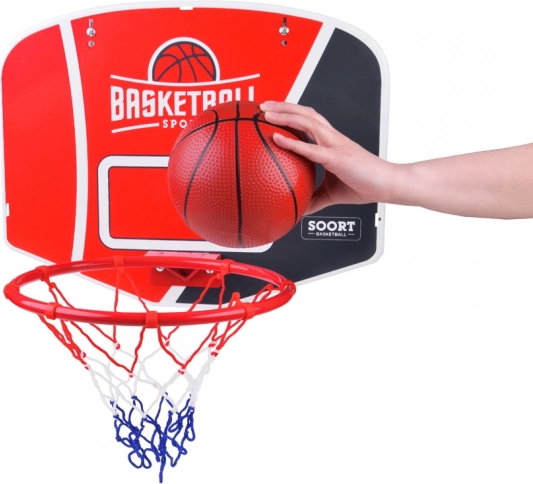 Complete basketbalset voor kinderen en beginners, met een duurzaam bord van 46 × 36 cm, metalen ring met een binnendiameter van ca. 30 cm, gekleurde net, bal en pomp. Eenvoudige montage aan de muur, binnen en buiten, ideaal voor het trainen van precisie en actieve fun. Robuuste uitvoering, compleet toebehoren en universeel gebruik zorgen voor veel sportplezier.