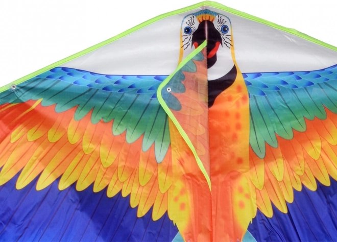 Het papegaaimodel met blauw–geel–oranje details valt op in de lucht en helpt bij de oriëntatie tijdens het vliegen.