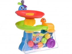 Deze iconische speelgoedset van PLAYSKOOL combineert de magie van bewegende balletjes met eenvoudige bediening. Kinderen werpen de balletjes in de trechter, volgen hun draaiende beweging en hun hernieuwde verschijning bovenaan, vanwaar ze over de spiraalbaan naar beneden rollen. Ritmische bewegingen en heldere kleuren trekken de aandacht en ondersteunen de concentratie.