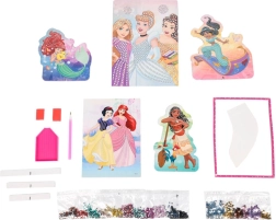 Betreed de magische sprookjeswereld met de creatieve set DISNEY PRINCESS. Elk gemarkeerd punt op de sjabloon komt overeen met de kleur van het steentje, waardoor het knutselen eenvoudig, overzichtelijk en zeer bevredigend is. Het resultaat? Een prachtig sprankelend kunstwerk dat de kinderkamer opfleurt of dient als een origineel cadeau.