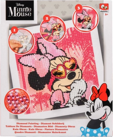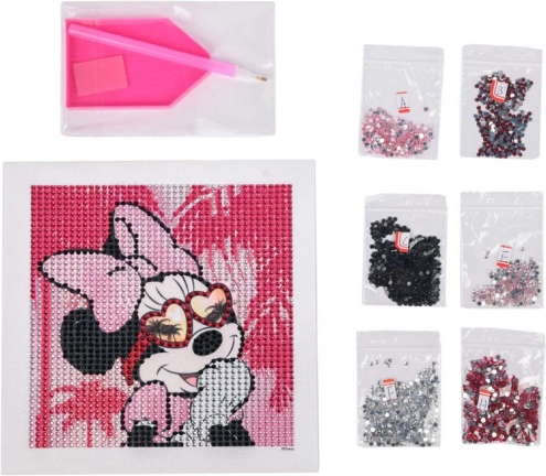 Maak eenvoudig en leuk een glinsterend schilderij van Minnie Mouse met de bijgeleverde kristallen steentjes en gereedschappen.
