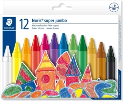 Staedtler Noris Jumbo waskrijtjes bieden 12 levendige kleuren die de creativiteit en verbeeldingskracht van uw kind stimuleren. Deze krijtjes zijn geurloos en niet-toxisch, wat veilig gebruik garandeert. Met hun ergonomische vorm zijn ze ideaal voor kleine handjes en bieden ze een gemakkelijke grip. De hoogwaardige wasstructuur zorgt voor soepel tekenen.