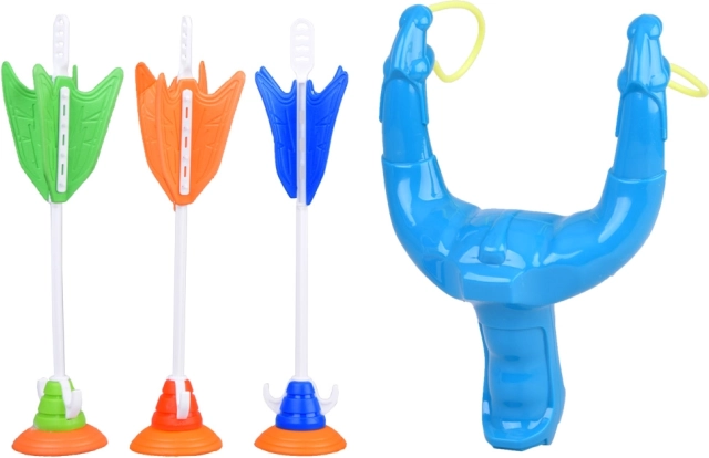 Inhoud van de verpakking: 1× katapult, 3× zuignaspijl