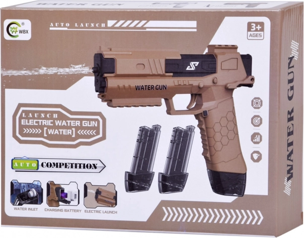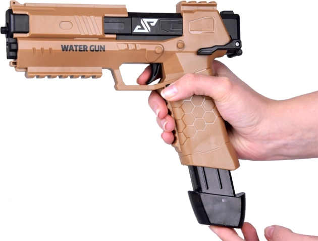 Dit moderne waterpistool gebruikt een elektrisch mechanisme – je drukt de trekker in en de motor start onmiddellijk een constante waterstraal. De duurzame kunststof constructie en ergonomische handgreep met antisliptextuur garanderen een zekere grip en eenvoudige bediening, ook voor jongere kinderen.