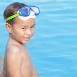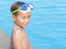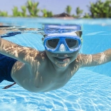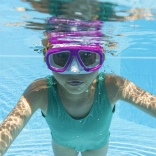 Met het masker kan het kind vrij duiken, in het water spetteren en tegelijkertijd de onderwaterwereld observeren.