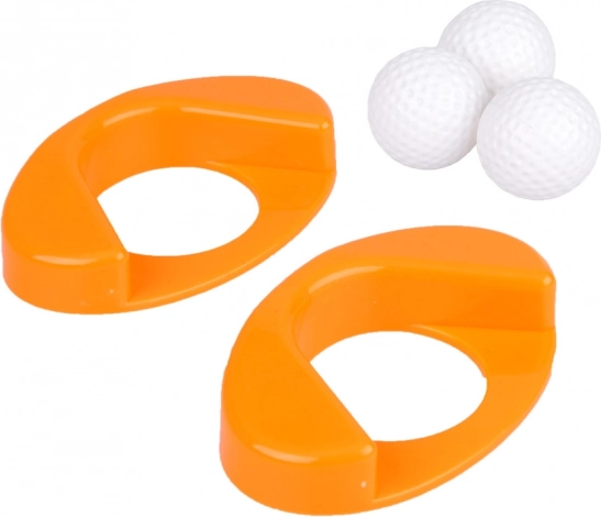 Drie lichte kunststof clubs, drie ballen en twee holes met basis bieden alles wat nodig is voor minigolf thuis en buiten.