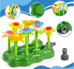 Kleurige bloemen golven mee met de waterstroom en sproeien in alle richtingen – ideaal voor zomers speelplezier op het gazon.