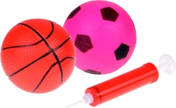 Twee opblaasbare ballen met pompje zijn klaar voor werpen en eenvoudige balspelletjes. De veren-shuttle traint precisie en reactievermogen.
