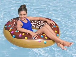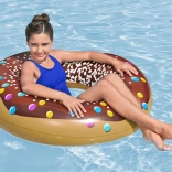 Geniet van de zomer met de Bestway-zwemband in donutvorm met sprinkels, met een speels design, een grote diameter van 107 cm en duurzaam PVC-materiaal met een veiligheidsventiel voor comfortabel en veilig relaxen bij het water.