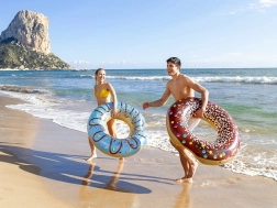 - Trendy design donut met gekleurde sprinkels – een blikvanger bij het zwembad en op het strand.