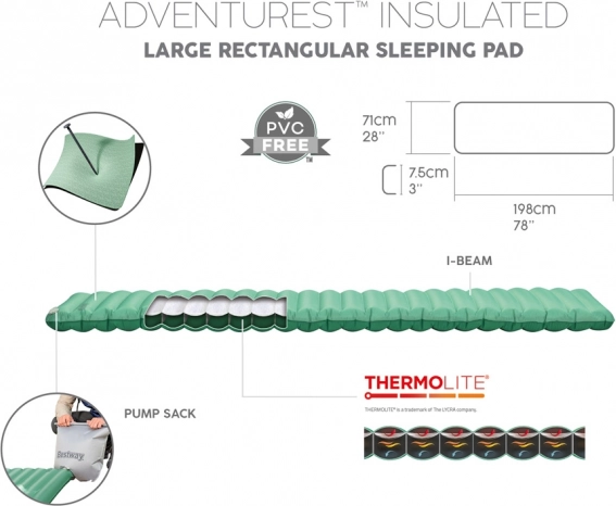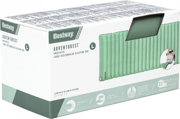 De opblaasbare slaapmat Bestway AdventuRest is de perfecte metgezel voor uw outdoor avonturen. Dankzij het gepatenteerde AirCinch™-systeem geniet u van eenvoudig en snel opblazen zonder extra gereedschap. Druk gewoon met uw handen en de mat vult zich met lucht.