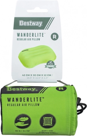 Opblaasbaar kussen Bestway WanderLite is gemaakt van het duurzame materiaal ToughLite en een zachte, elastische polyester breisel 50D. Het is lichtgewicht en neemt niet veel ruimte in beslag, eenvoudig op te vouwen en te dragen. Dankzij de tas waarin u het na elk gebruik kunt opbergen, is opbergen eenvoudiger.
