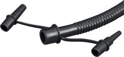 De pomp is uitgerust met drie adapters die passen op verschillende typen ventielen, waardoor hij ideaal is voor diverse behoeften.