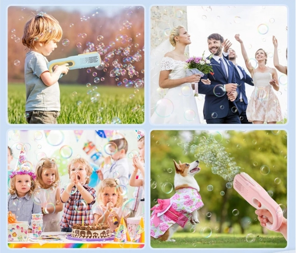 - Eenvoudig in gebruik: vul de oplossing, druk op de trekker en geniet van een zee van bellen.