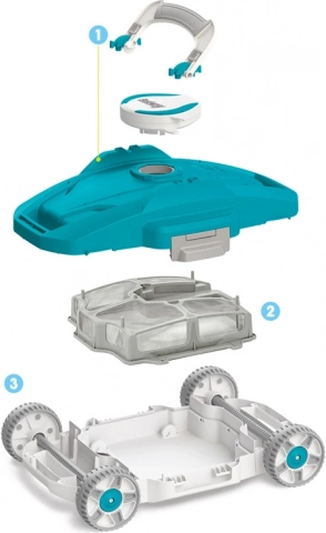 Het apparaat wordt bediend met één aan/uit-schakelaar en bevat ingebouwde sensoren die AquaTronix activeren om te beginnen met reinigen zodra het in het water wordt ondergedompeld, en het uitschakelen wanneer het uit het water wordt gehaald, wat de motor beschermt en de levensduur verlengt. De grote ingebouwde kamer kan tot 3,5 l vuil opnemen. Na volledig opladen werkt de AquaTronix ongeveer 90 minuten, wat voldoende tijd biedt om een kristalhelder zwembad te bereiken. Deze draadloze robot heeft volledige bewegingsvrijheid dankzij de gepatenteerde richtingsstroom, waardoor hij van richting kan veranderen bij contact met wanden of obstakels. Bovendien vereenvoudigen snelspanklemmen het onderhoud en reinigen – open eenvoudig de kamer en verwijder het vuil.