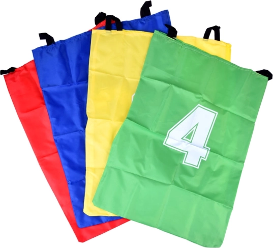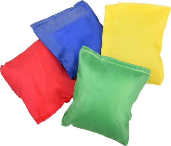 Kinder gooi spel met ringen en ballen in een net met mandjes