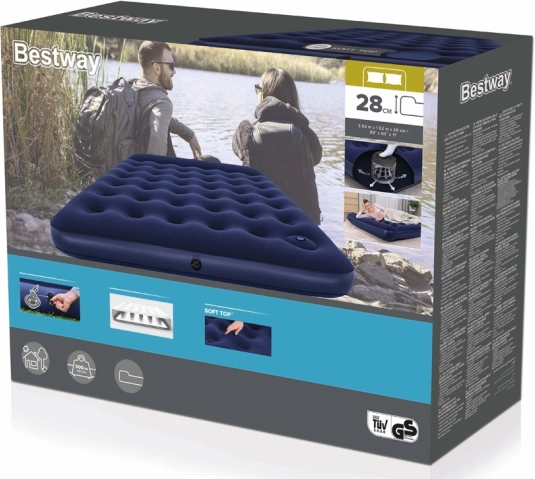 Het opblaasbare luchtbed BESTWAY Queen is een betrouwbare oplossing voor logees, vakantie in het vakantiehuis en kamperen. De stabiele coil‑beam constructie verdeelt het gewicht gelijkmatig en houdt het bed aangenaam stevig, terwijl het zachte vinyloppervlak prettig aanvoelt. Het geïntegreerde kussen ondersteunt hoofd en nek, zodat je overal kunt genieten van comfortabel ontspannen.