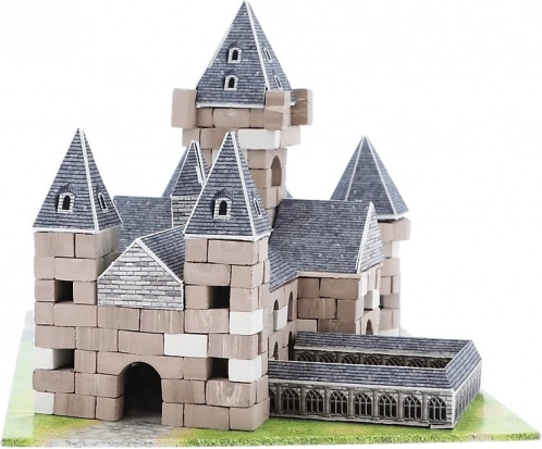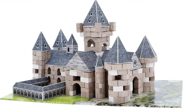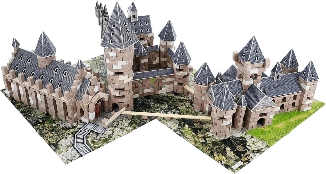 Authentieke ervaring: stapel echte kleibaksteentjes, snijd en lijm houten latjes en creëer een gedetailleerd deel van Hogwarts met torentjes en galerijen.
