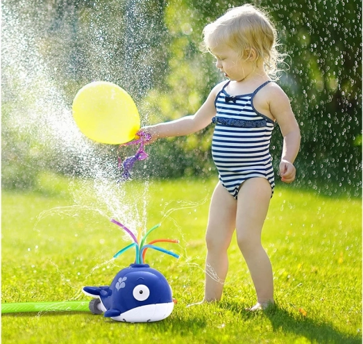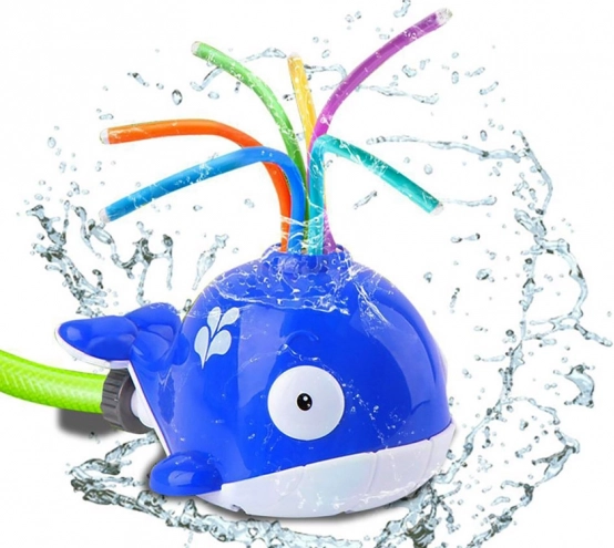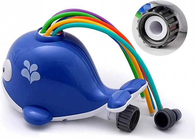De schattige blauwe walvis met gekleurde, veerkrachtige slangetjes vernevelt water in alle richtingen en tovert een verfrissende fontein. Kinderen genieten van actieve buitenspelen en aangename verkoeling op hete dagen. Aansluiten is eenvoudig – compatibel met een standaard tuinslang, de waterstraal pas je makkelijk aan rechtstreeks via de kraan.