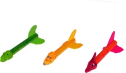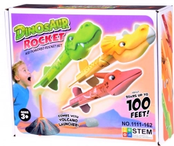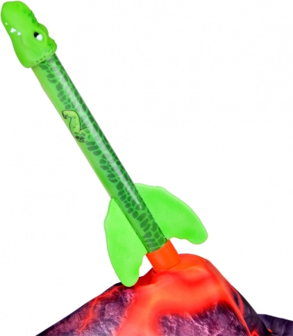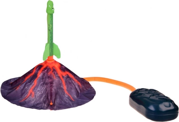Druk stevig op de balg en de dinosaurusraket schiet omhoog. Geen batterijen nodig, puur kinderpower.