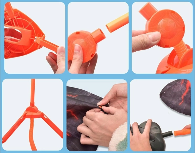 Duurzame uitvoering van de vulkaan en een lange slang voor comfortabele plaatsing, gemakkelijk meenemen en opbergen.