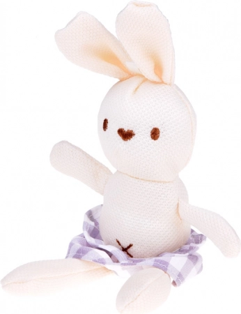 Het superzachte konijntje in hetzelfde rokje stimuleert tedere zorg en sociaal spel.