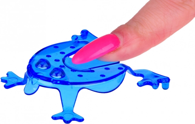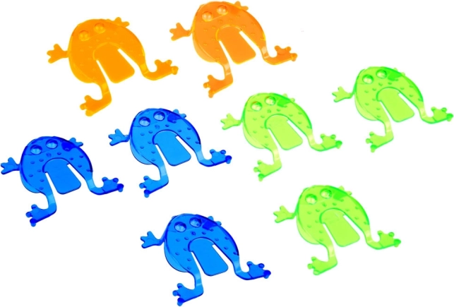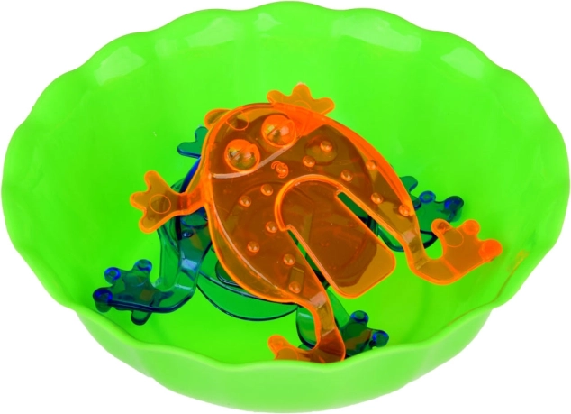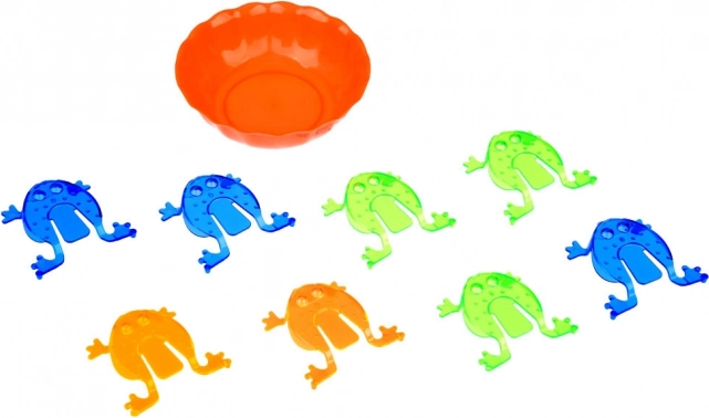 Kleurige plastic kikkers schiet je eenvoudig met je vinger af en stuur je rechtstreeks de kom in. Ideaal voor snelle wedstrijdjes en behendigheidstraining.