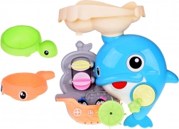 Giet water in het bovenste reservoir en kijk hoe de wieltjes gaan draaien, de waterval start en het hele paneel met de dolfijn tot leven komt – plezier dat nooit verveelt.