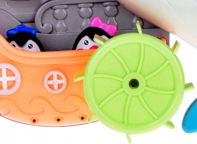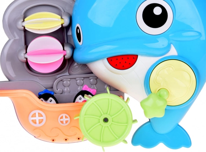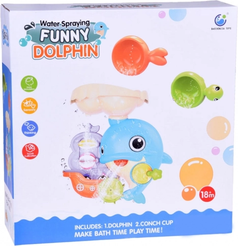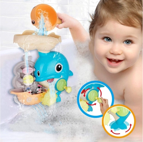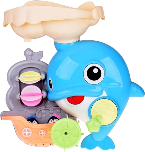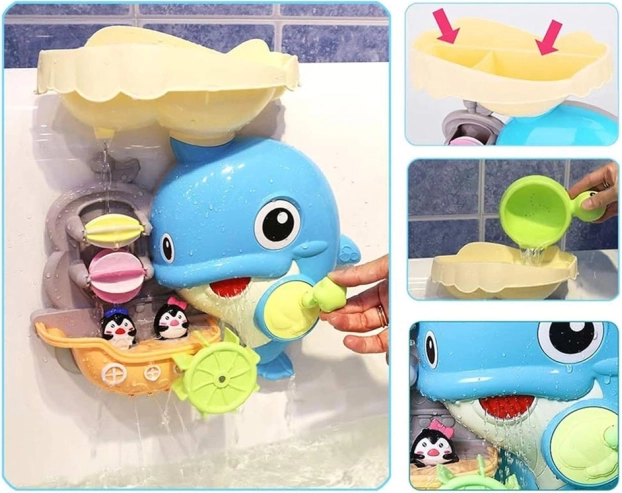De vrolijke dolfijn voor in bad is een kleurrijk interactief speeltje dat kinderen uitnodigt om waterexperimenten te ontdekken. Giet gewoon water in het bovenste reservoir en kijk hoe de waterwieltjes gaan draaien, de waterval begint te stromen en de vin van de dolfijn beweegt. Het bootje met de kleine pinguïns maakt de verhalen tijdens het bad compleet.