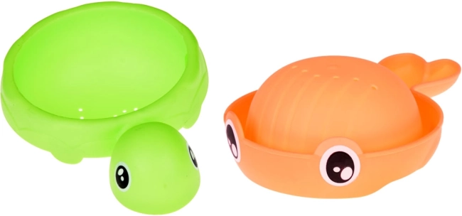 Dankzij de krachtige zuignappen bevestig je het speelgoed eenvoudig op tegels of aan de rand van het bad. Kinderen kunnen water overgieten met bekers in de vorm van een groene schildpad en een oranje visje, waarmee ze oog-handcoördinatie en fijne motoriek trainen en tegelijk veilig en creatief waterspel beleven.