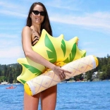 Het ligbed is ideaal voor op vakantie, in het tuinzwembad of op een rustig meer. Dankzij de compacte afmetingen en het lage gewicht is het eenvoudig op te blazen, op te vouwen en mee te nemen. Vrolijke gele en groene tinten, geïnspireerd op ananas, geven elk zwemuitje een zomerse sfeer.