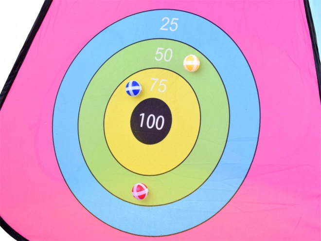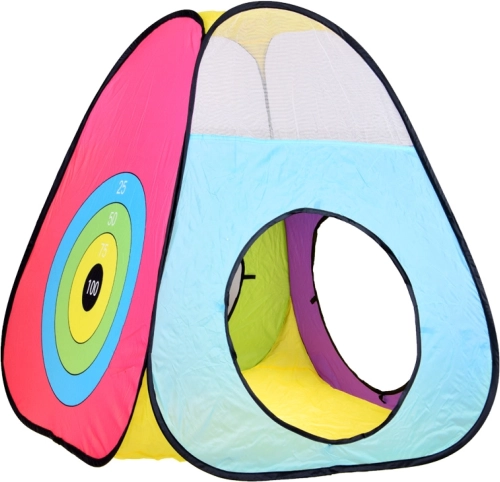 De driehoekstent met kleurrijke doelschijf en doelopeningen traint nauwkeurigheid en motoriek. Perfecte competitieve pret voor kleine werpers.