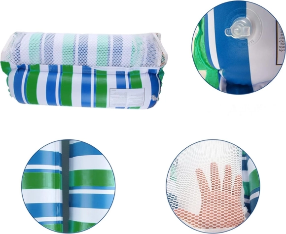 De combinatie van blauw, groen en wit maakt hem zowel esthetisch aantrekkelijk als functioneel. Het speciale nylongaas laat water doorstromen en verhoogt zo het comfort tijdens het gebruik.