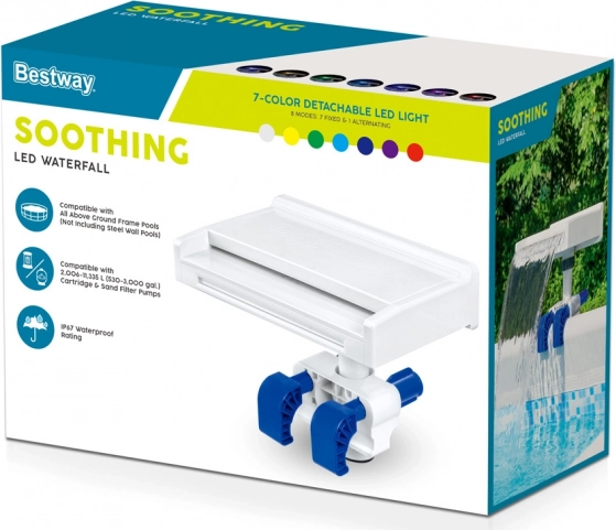Breng leven in je zwembad met de Bestway Flowclear-waterval met LED‑verlichting, die niet alleen kinderen plezier bezorgt maar volwassenen ook laat ontspannen tijdens het baden in je eigen zwembad. Deze eenvoudig te gebruiken waterval kan worden gemonteerd op alle framezwembaden met een filterpomp met een capaciteit van 2006 tot 11.355 l/u.