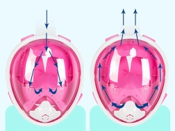 Gescheiden kanalen voor inademing en uitademing met Dry Top technologie zorgen ervoor dat er geen water in de masker komt.