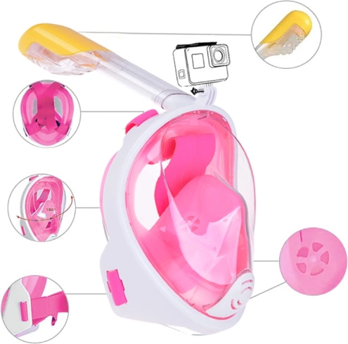 Ontdek moeiteloos de schoonheid van de onderwaterwereld met dit volle gezicht snorkelmasker. Dit innovatieve masker biedt een 180° breed gezichtsveld en gemakkelijk ademhalen dankzij de gescheiden kanalen voor inademen en uitademen.
