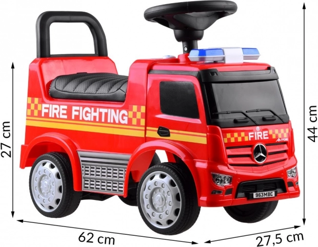 Zorg voor plezier en veiligheid voor uw kind met deze gelicenseerde Mercedes loopauto in de vorm van een brandweerwagen. Gemaakt van hoogwaardige kunststof, biedt het uitzonderlijke duurzaamheid en kleurvastheid. Dankzij de comfortabele zitting met rugleuning is de rit niet alleen comfortabel maar ook veilig. Het vergrendelmechanisme voorkomt omkantelen naar achteren.