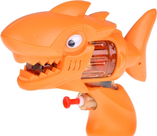 Dit compacte waterpistool in de vorm van een oranje haai is gemaakt van glad, prettig aanvoelend kunststof en is ideaal voor zomerse pret. Kinderen waarderen het speelse uiterlijk met vinnen, tandjes en het opvallende oog dat bij beweging vrolijk meedeint. Dankzij het transparante reservoir hebben kleine schutters altijd zicht op de resterende hoeveelheid water.