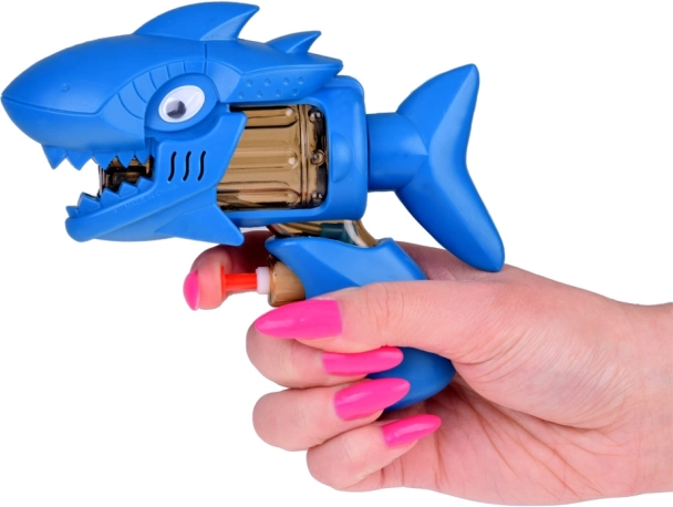 Dit blauwe waterpistool in haaivorm is gemaakt van glad en prettig kunststof, veilig voor kinderen. Dankzij de compacte afmetingen ligt het ook bij kleinere kinderen goed in de hand en is het ideaal voor warme dagen, feestjes en paasspelen met water.