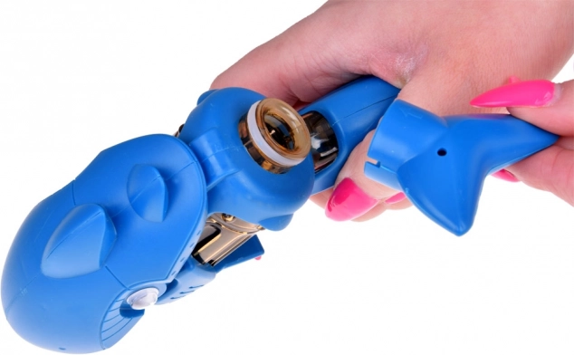 De bediening is uiterst eenvoudig: draai de staart los, giet water in het reservoir, sluit opnieuw en druk op de rode trekker. Het transparante reservoir laat kinderen op ieder moment zien hoeveel water er nog over is. De bewegende haaienogen geven het speelgoed een leuk effect bij elke beweging.