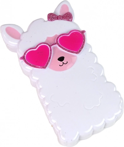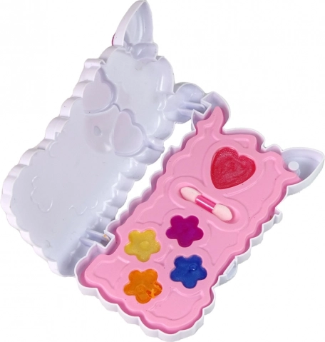Een schattige make-uppalet in de vorm van een roze lama die elke kleine diva zal verrassen. Bevat 4 tinten lipgloss, 4 oogschaduws, blush en een kwastje. De producten zijn vrij van parabenen, gemakkelijk te verwijderen met warm water en zeep en ideaal voor de eerste make-upexperimenten. Dankzij de compacte afmetingen past het palet in een klein tasje of rugzak.