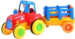Een vrolijke kindertrekker met aanhanger en diertjes die elke kleine boer blij zal maken. Het speelgoed biedt licht- en geluidseffecten, aandrijving naar voren en een veilige, duurzame afwerking. De set bevat een aanhanger met hekwerk en twee figuurtjes – een koe en een paard. Stimuleert uitstekend de fijne motoriek, coördinatie en verbeelding van kinderen vanaf 18 maanden.