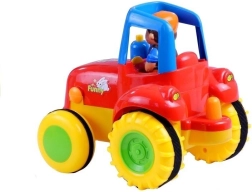 Het speelgoed is gemaakt van hoogwaardige kunststof en is stevig, duurzaam en veilig voor dagelijks spel. De aandrijving van de tractor motiveert kinderen tot beweging – ze leren kruipen of zetten de eerste stapjes terwijl ze het voertuig “achterna jagen”. Lichten en geluiden geven het spel realisme en stimuleren de zintuiglijke ontwikkeling.