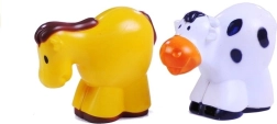 De verpakking bevat figuurtjes van een koe en een paard die creatieve en thematische spelletjes ondersteunen.