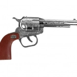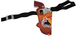 Klassieke look van de revolver met oog voor detail en comfortabel dragen dankzij de holster met riem. De revolver is 19 cm lang.