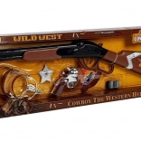 Betreed de wereld van het Wilde Westen met deze complete cowboyset voor kinderen. Bevat een geweer met schotgeluiden, revolver, sheriffster, holster met riem en sporen. Ideaal voor verkleedfeesten, carnaval en fantasiespel thuis. Het geweer werkt op 2× AA 1,5 V (batterijen niet inbegrepen).