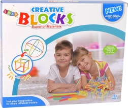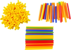 Bouwset van Stokjes en Rietjes maakt het mogelijk verschillende bouwwerken en ruimtelijke constructies te creëren. De verpakking bevat plastic rietjes en verbindingsstukken die ontworpen zijn voor alle gebruikers.