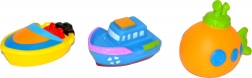 Ontdek badplezier met een set van drie zachte rubberen speeltjes – twee bootjes en een duikboot. Ideaal voor de allerkleinsten vanaf 0+, veilig voor kleine handjes en gemakkelijk vast te pakken. Zacht materiaal, veilig spelen in water en eenvoudig onderhoud zorgen voor plezier bij elk badmoment.