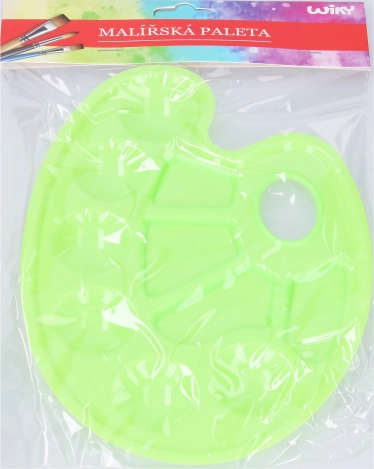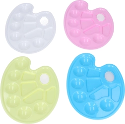 Dit praktische kunststof schilderspalet is ontworpen voor het comfortabel mengen van plakkaatverf en andere harde verven. Het lichte materiaal ligt prettig in de hand en is gemakkelijk schoon te maken, waardoor het ideaal is voor regelmatig gebruik op school, in het atelier en thuis.