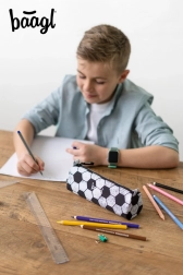 Baagl etui voor schrijfwaren met een voetbalmotief, ideaal voor studenten die op zoek zijn naar een stijlvolle en praktische oplossing voor het opbergen van potloden en pennen.